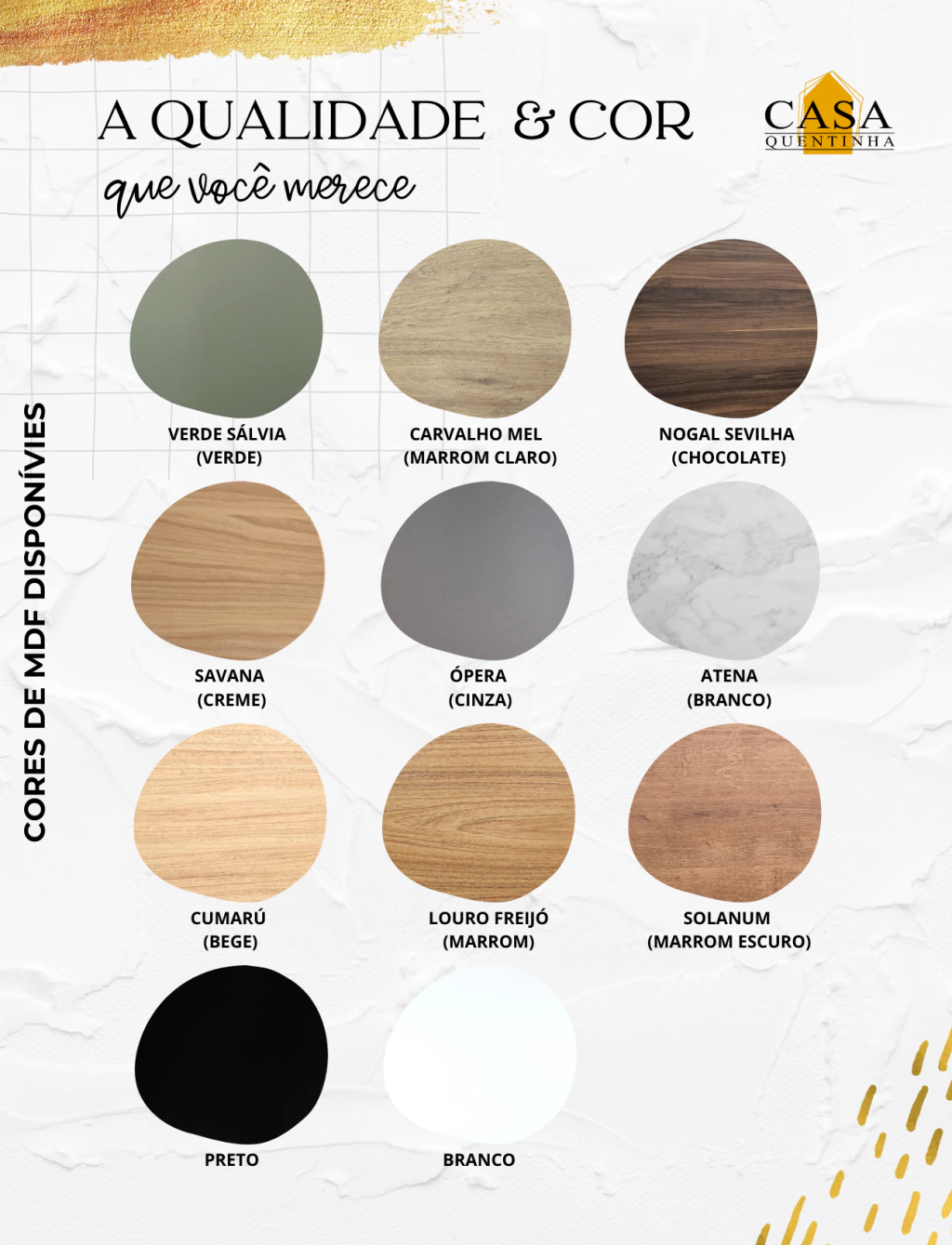 - MDF da marca Arauco de 1,8cm boa durabilidade e excelente acabamento.